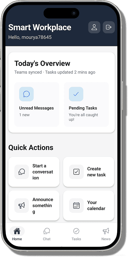 A mobile-first employee communication app that helps teams stay aligned through messaging, task updates, and centralized announcements.